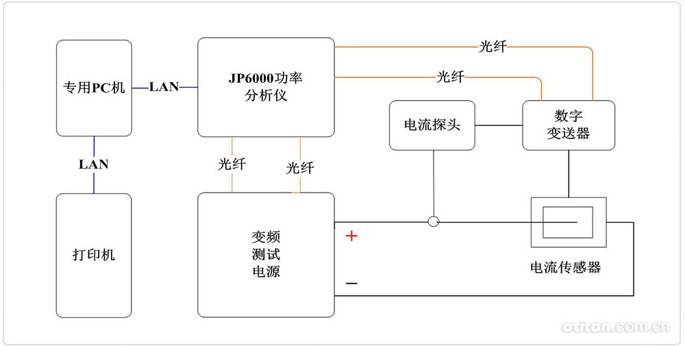 不論是計量還是測試能力均建議建立自動化的控制、采集和數據處理能力,提高試驗效率、減少人為干擾。為提升生產制造企業、科研單位變頻電量計量檢測能力,結合我司計量檢測實力,提煉出變頻電量測試儀器測試系統總體方案配置。